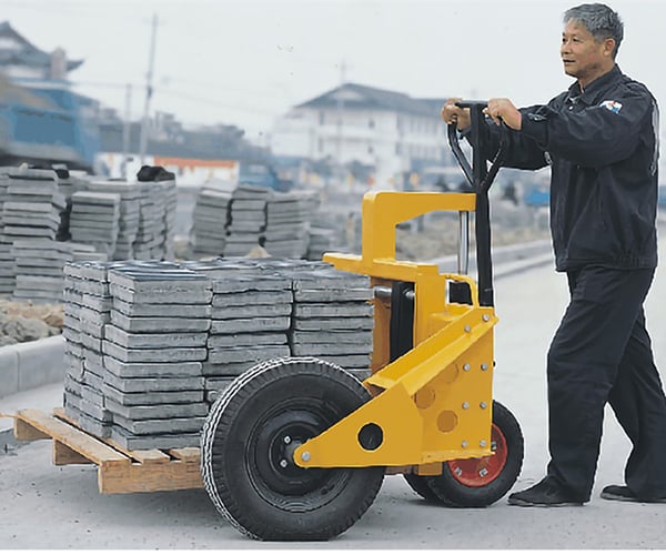 A Rough Terrain Pallet Truck is a heavy-duty manual or powered handling equipment designed to move palletized loads over uneven, rough, or outdoor surfaces like construction sites, gravel paths, garden centers, and rooftops. Unlike standard warehouse pallet trucks, it features large pneumatic tires and higher ground clearance for better stability on challenging terrain. -