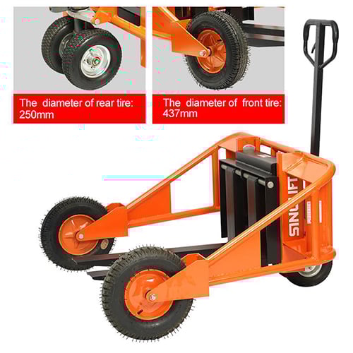 Equipped with four high-quality load tires: the front wheel is a pneumatic tire, and the rear wheel is a solid tire. It is suitable for rugged ordinary roads and is fully equipped with the abrasion resistance of engineering and agricultural tires.