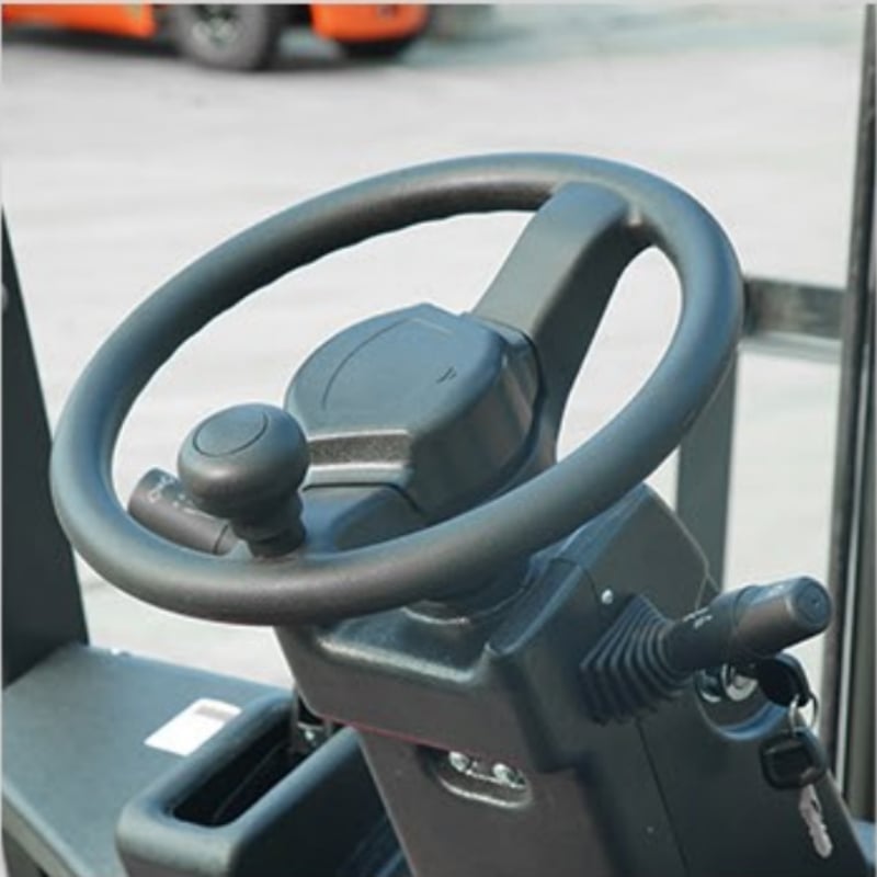 Designed in accordance with ergonomics, the wheelbase is increased to enlarge leg space, the handwheel radius is reduced to 300mm, and the seat can be adjusted backwards and forwards, allowing the operator to choose the best driving position. The fully enclosed console space and fully open side door design enhance operational comfort.