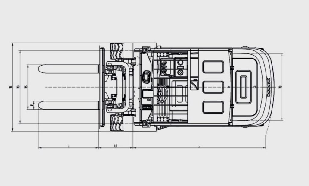 The optimized design of the wide-view mast, wide-view overhead guard, and low dashboard provides a broader view and higher safety. The drive motor is arranged in parallel, the battery is placed at the bottom of the vehicle frame, the wheelbase and rear wheel pitch are increased, the swing point of the steering axle is raised, and the distance between the front of the fork and the front axle is reduced, ensuring excellent stability. The high-strength integrated welded overhead guard enhances safety, while automatic deceleration when steering improves working safety, and mast lifting buffering enhances operational safety.